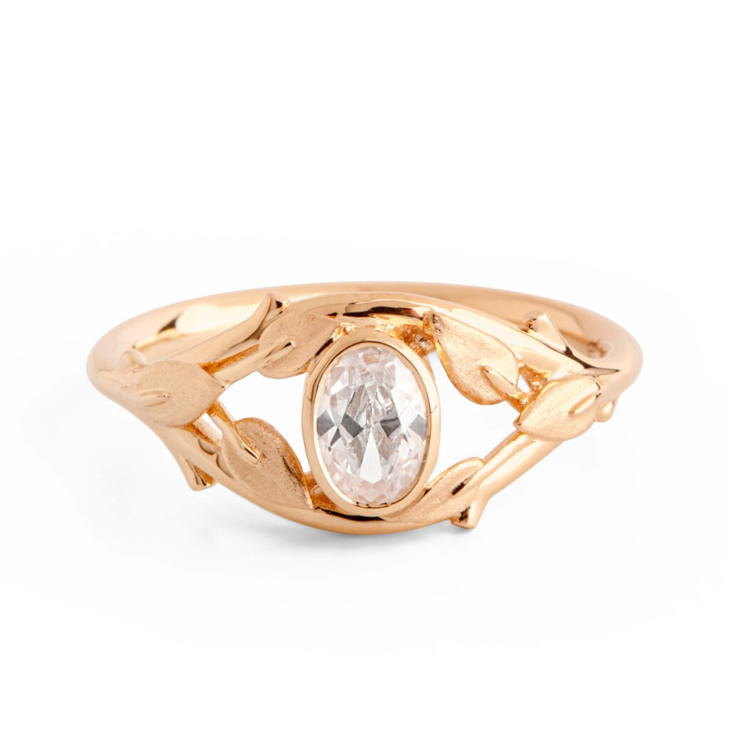 Twig and Leaf Oval Moissanite Engagement Ring