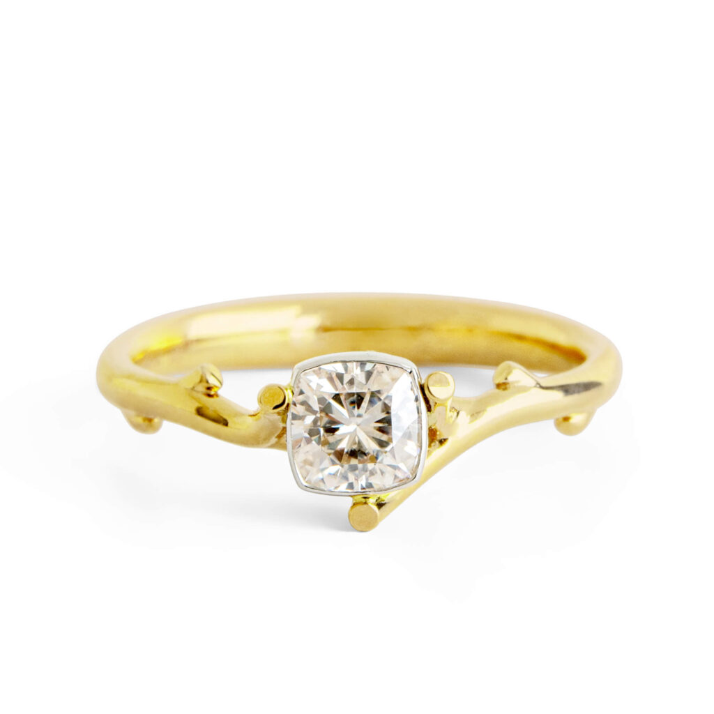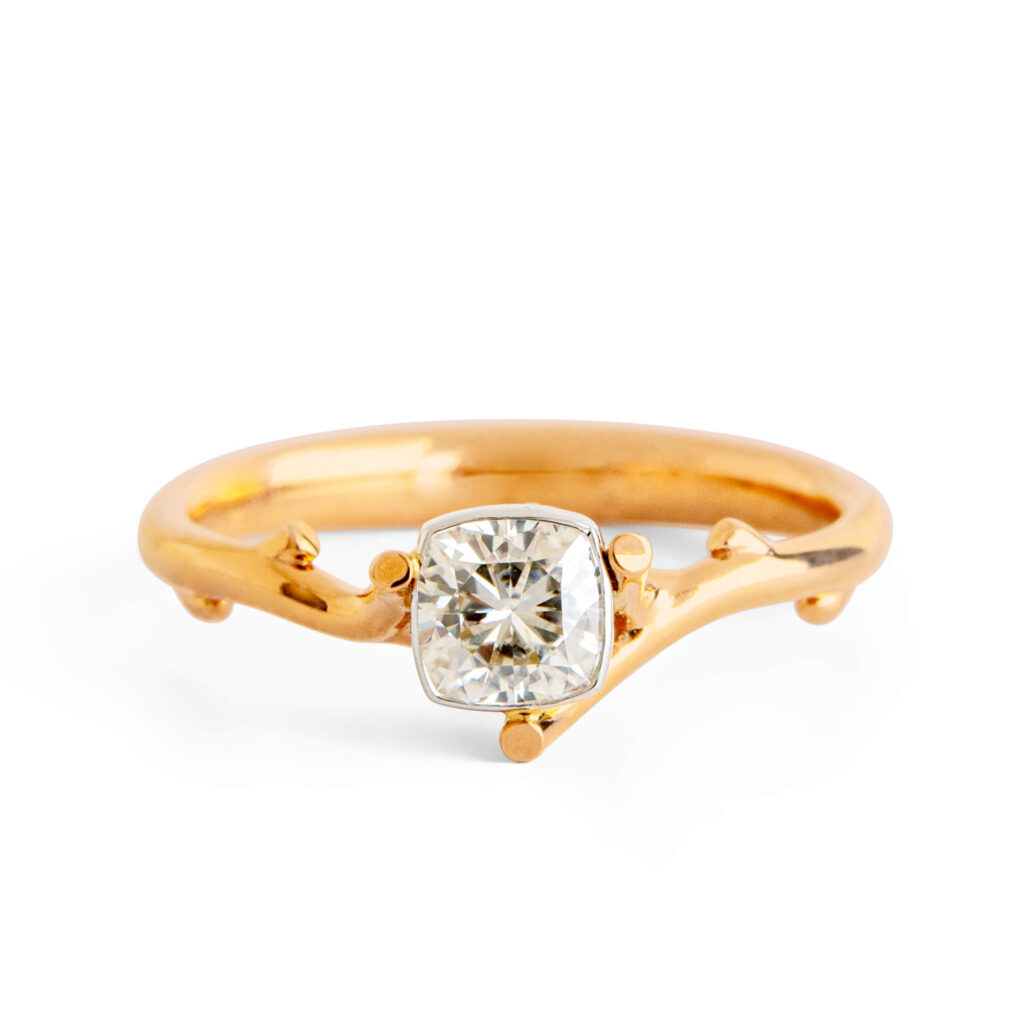 Cushion Moissanite Twig Engagement Ring