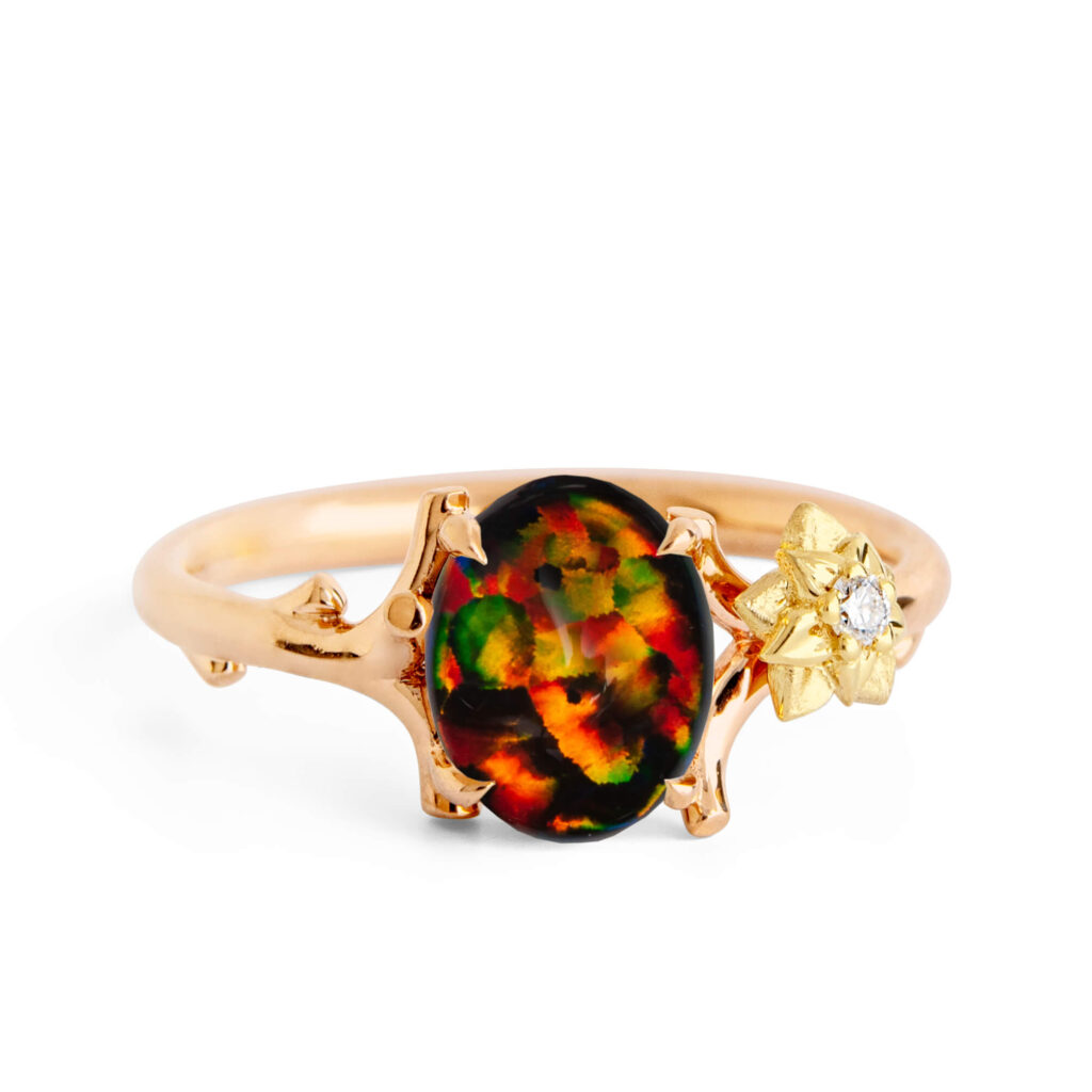 Large Oval Lab Black Opal Twig and Flower Ring