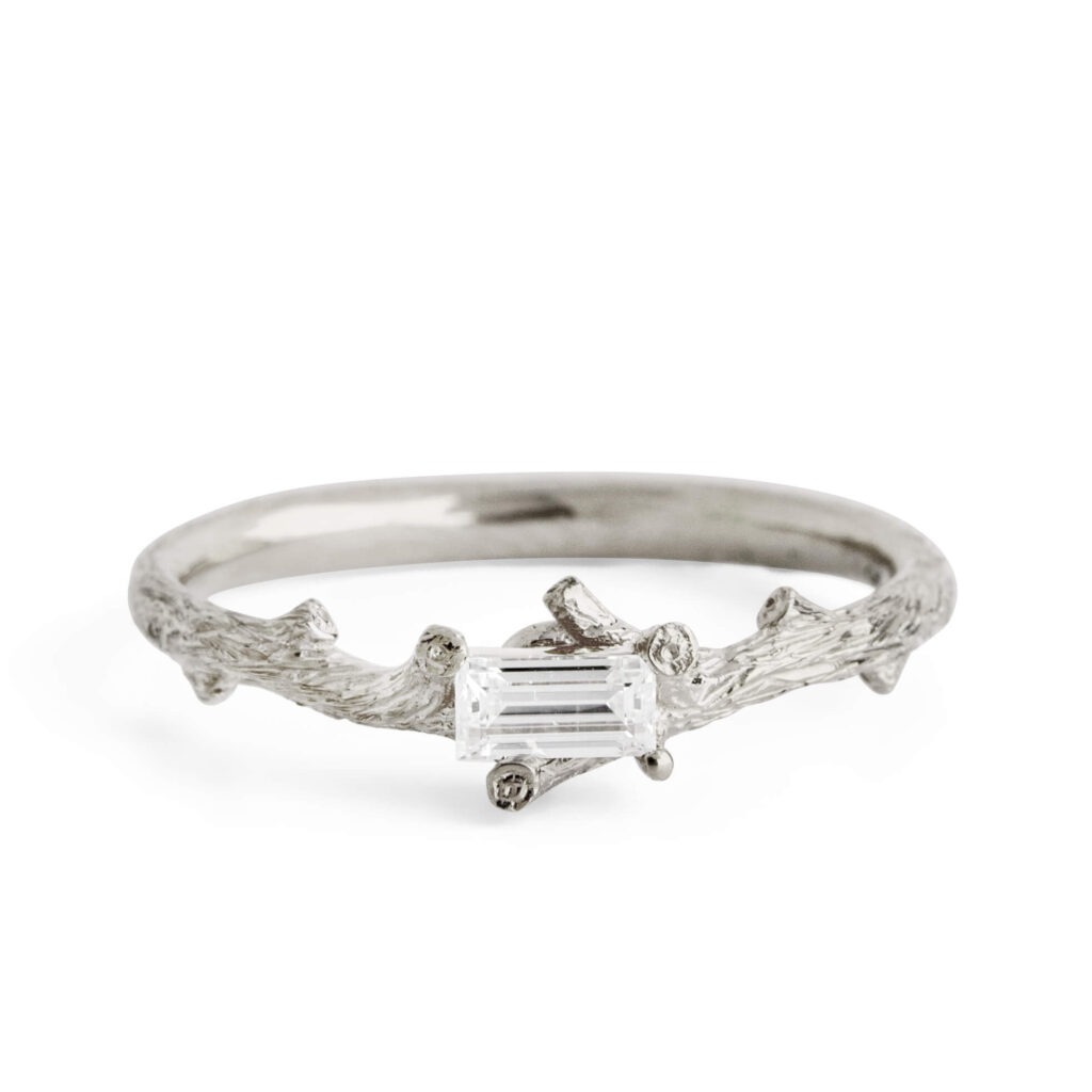 Dainty Baguette Moissanite Twig Engagement Ring