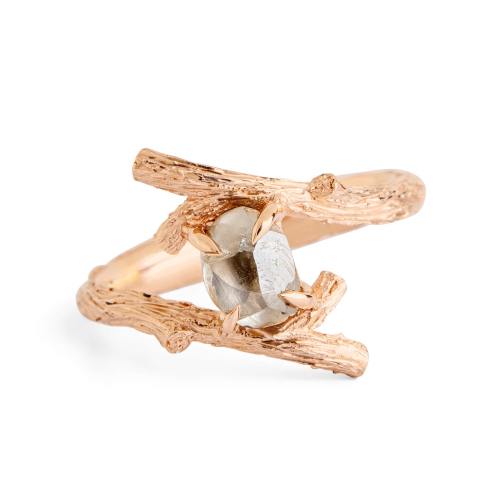 Raw Diamond Tree Branch Engagement Ring