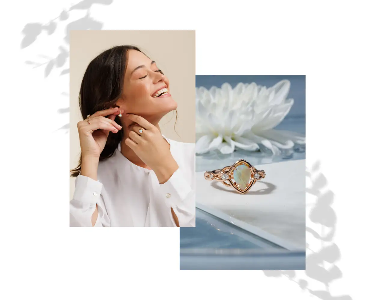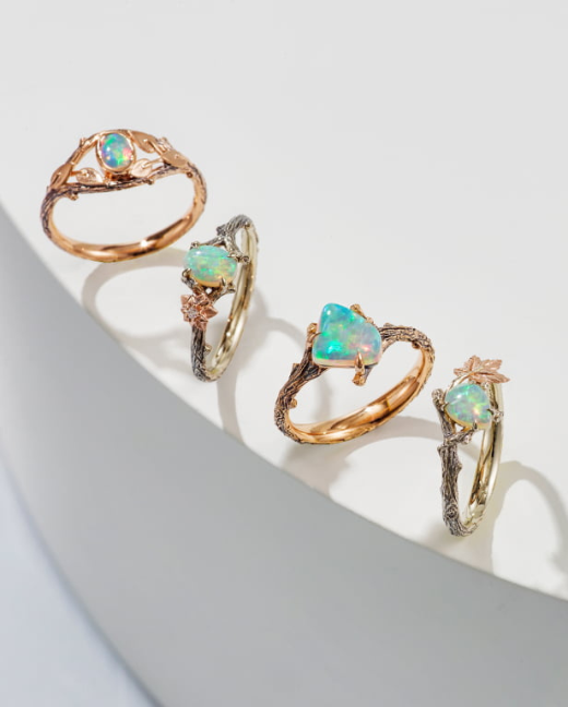 Oval Opal Twig and Leaves Engagement Ring