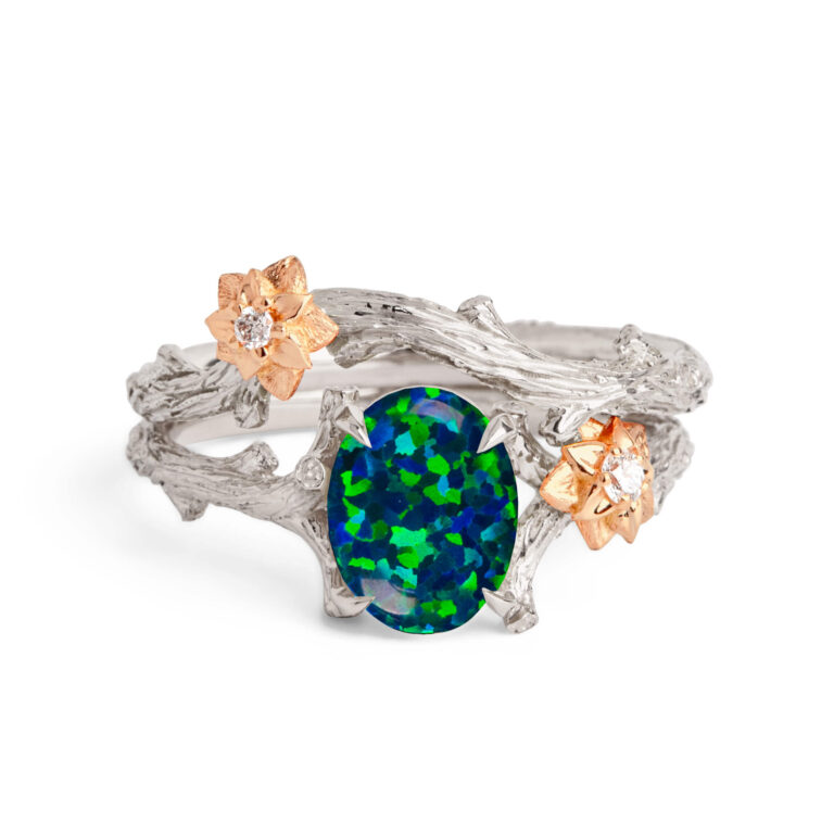 Large Oval Black Opal Twig and Flower Bridal Set