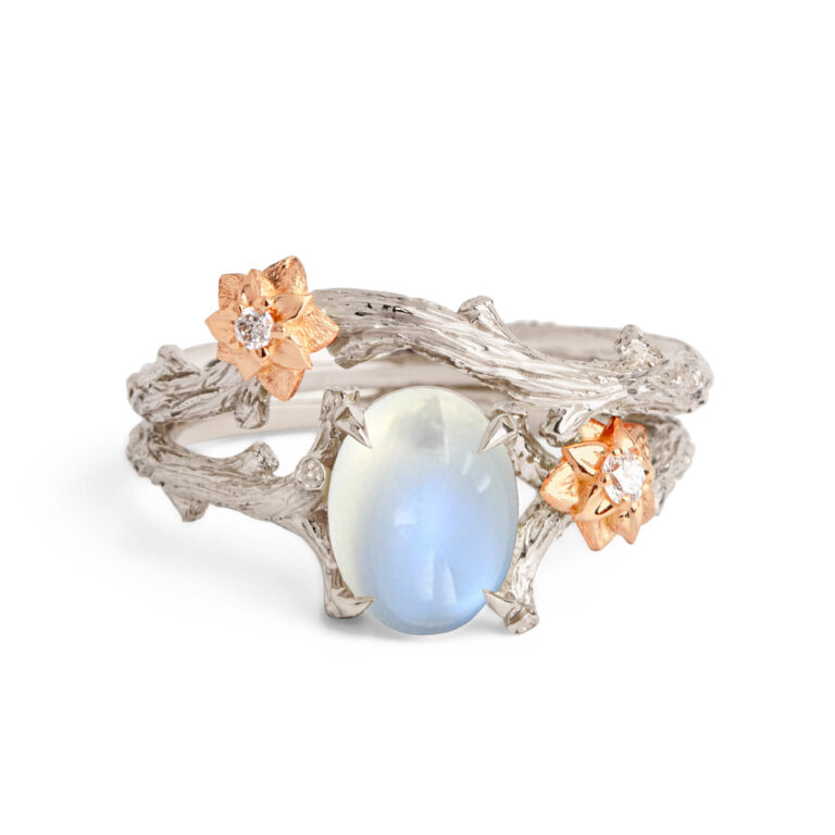 Large Oval Moonstone Twig and Flower Bridal Set