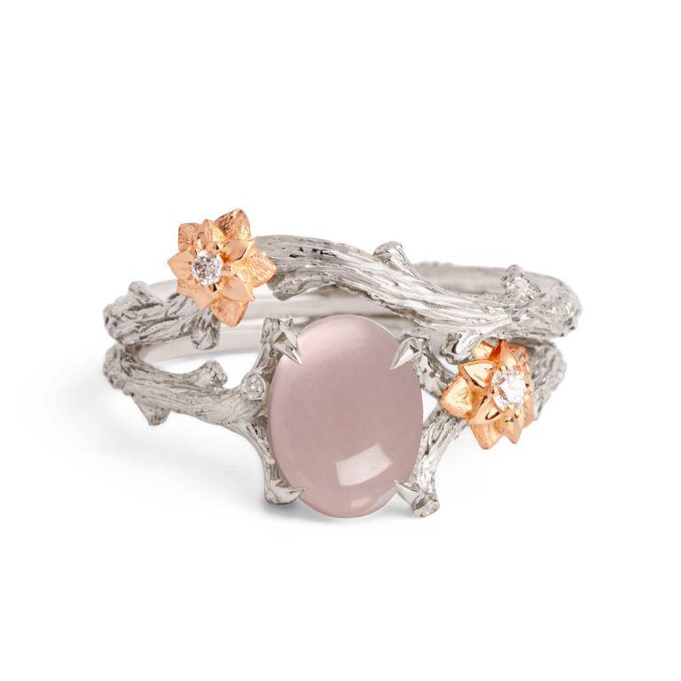 Large Oval Rose Quartz Twig and Flower Bridal Set