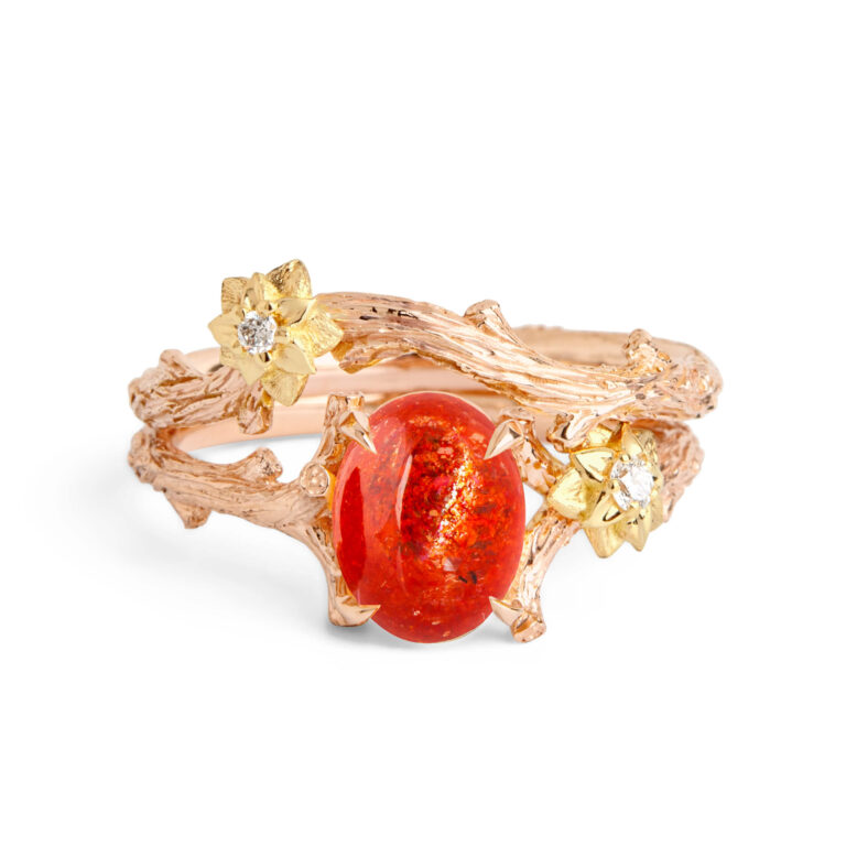 Large Oval Sunstone Twig and Flower Bridal Set
