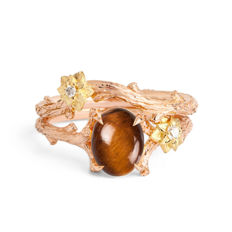 Large Oval Tiger’s Eye Twig and Flower Bridal Set