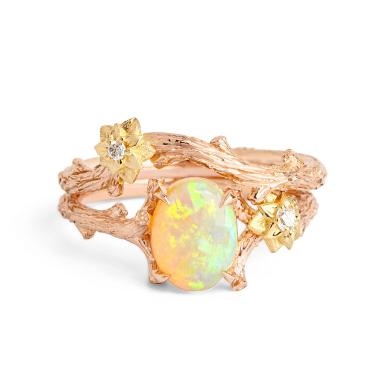 Oval Rose Quartz Tree Branch and Flower Bridal Set