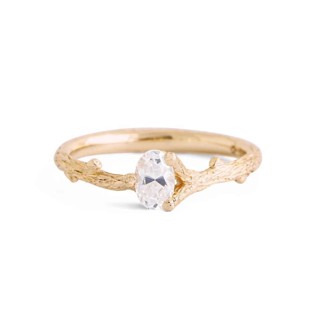 A handmade twig engagement ring set with a round cut diamond. The pictured diamond weighs 1ct.