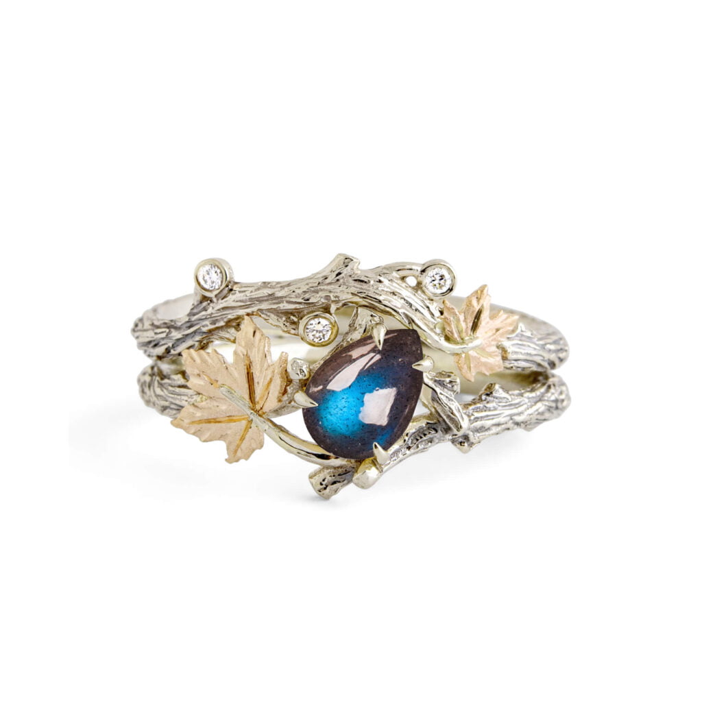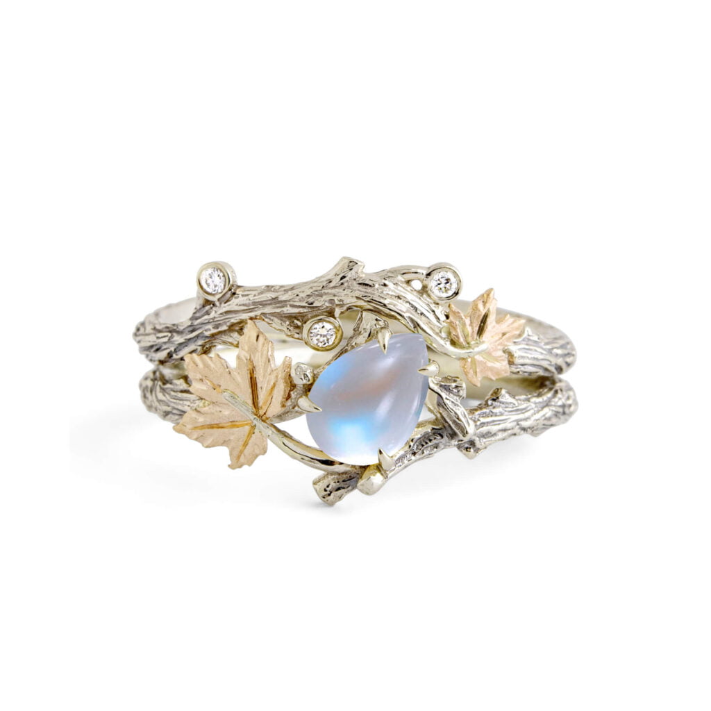 A handmade twig bridal set made with a 6mmX4mm natural oval moonstone of high quality.