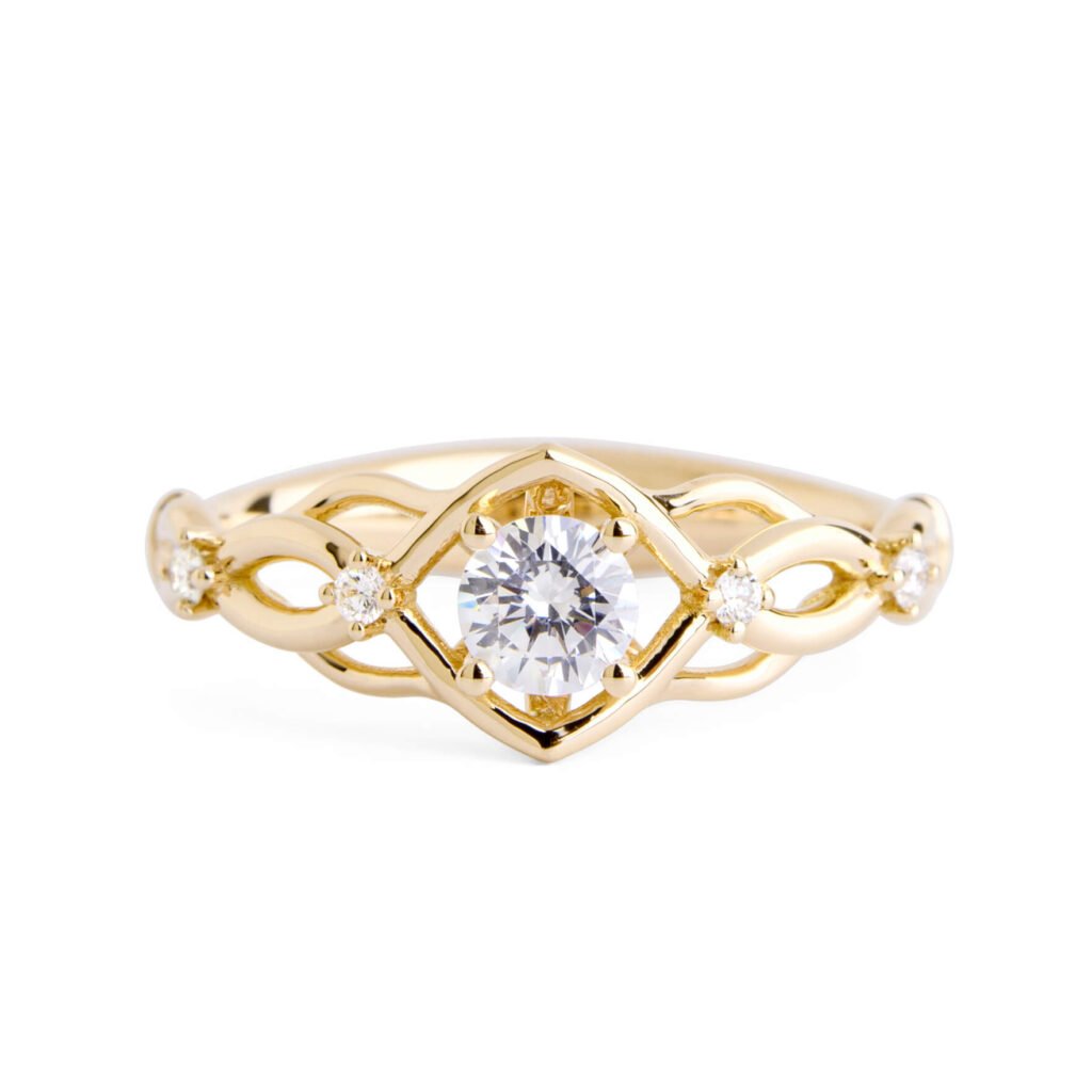This unique engagement ring is designed with fluent lines that create a pleasant composition that compliments the hand and is both subtle and leaves an impression.