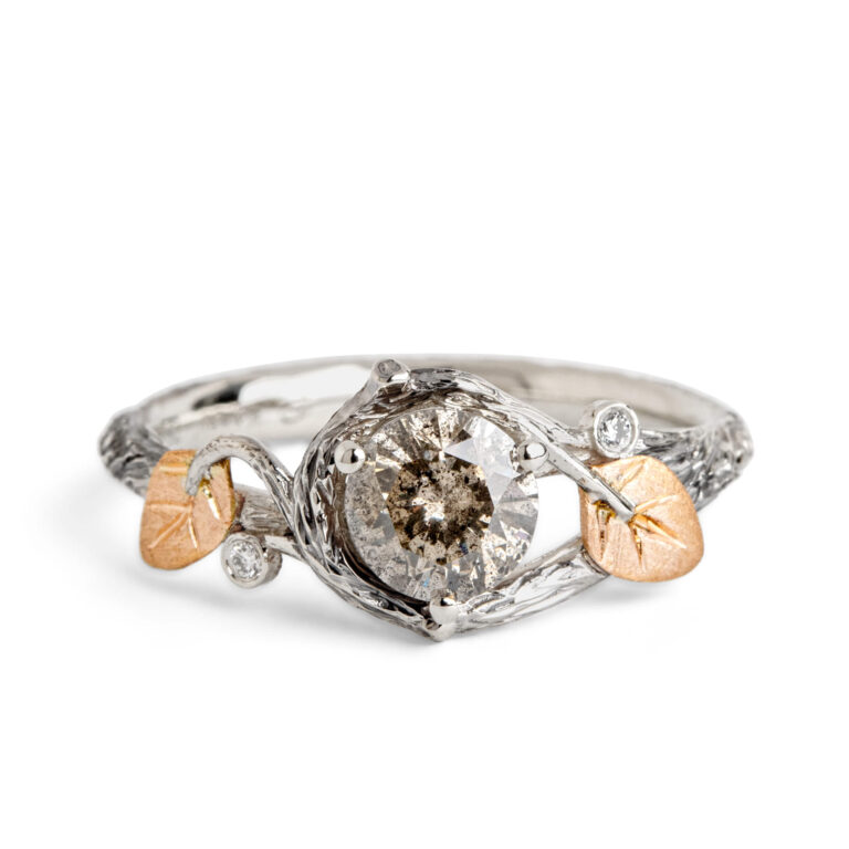Twig and Leaf Salt & Pepper Rustic Engagement Ring